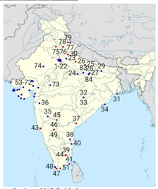 These 84 Baithaks are located from Rameswaram at the southern tip of India to Badrinath in the north, and from Narayan Sarovar and Bet Dwarka in west, to Puri in the east. Baithaks are also located at the places associated with his life such as at Tirumala Tirupati, the family’s protector deity; Champaran, his birthplace; Varanasi where he spent a significant part of his life. Baithaks are also located in the regions highly associated with Sri Krishna such as in Vraj region (now roughly corresponding to Mathura district of Uttar Pradesh) and in Dwarka in Gujarat. Baithaks from 1-22 are located in Vraj region roughly covering Mathura district of Uttar Pradesh and Baithaks from 53-72 are located in Gujarat.