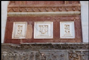 White, red, and black color stones come together to create a visual treat at Jagat Shiromani Temple, Jaipur