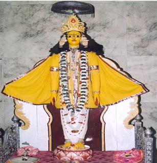 This tall Deity of Sri Caitanya Mahaprabhu is well known throughout Vrindavan as Amiya Nimai. This Deity as installed by the priests from Radharaman Temple