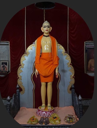 Sri Radha Govinda Goswami was born in a high class Brahmin family. His ancestors were great devotees of Sri Mahaprabhu. Sri Radha Govinda Goswami was highly skilled in music. The only means of his livelihood was the teaching of music. Whatever he earned by this work, he always spent in the service of Sri Mahaprabhu. All the Gaudiya devotees in Kolkata always honoured him. In the image of Sri Mahaprabhu, Sri Radha Govinda Goswami did not have the slightest feeling of a deity. He viewed and worshipped it as an actual manifestation of Sri Mahaprabhu.