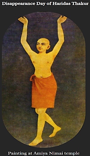 On this day, Mahaprabhu is dressed in the same mood He manifested on the occasion of Haridas Thakur’s disappearance. That day, Mahaprabhu went as a sannyasi beggar and collected alms and organized a feast for Haridas Thakur in Jagannath Puri. Thus, Amiya Nimai is dressed as a sannyasi on this day and carries a begging-bag in His hand. Special khichari bhoga is offered to Mahaprabhu and distributed among the devotees.